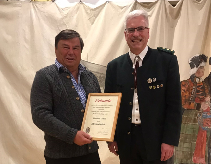 Thomas Graßl ist zum Ehrenmitglied ernannt worden. Thomas Graßl ist seit mehr als 55 Jahrne Mitglied im Verein. Bereits 1971 wurde er in den Vorstand gewählt und übernahm das Amt des 2. Sportleiters. Ab 1985 enaggierte er sich als Sportleiter. Schützenmeister Robert Schäffler gratulierte Thomas Graßl zur Auszeichnung.
